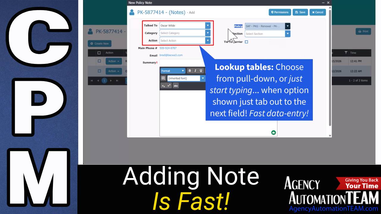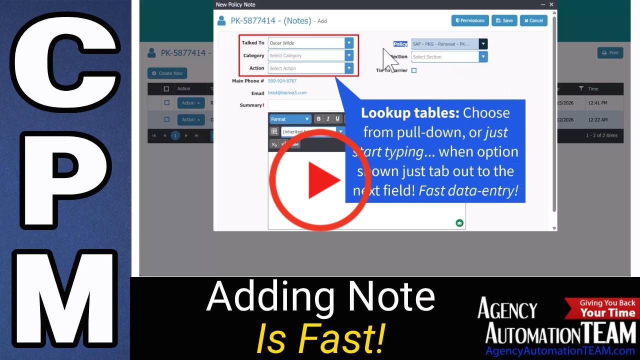 37 Second Video Shows Adding A Note faster—and linked to the right records