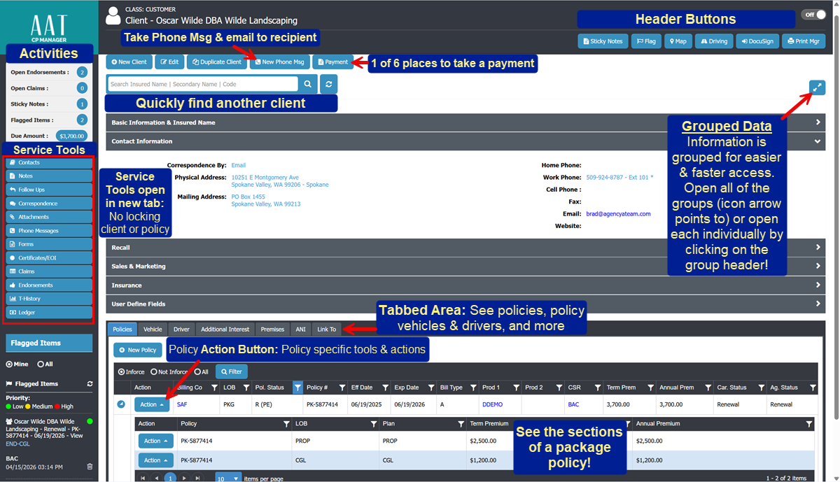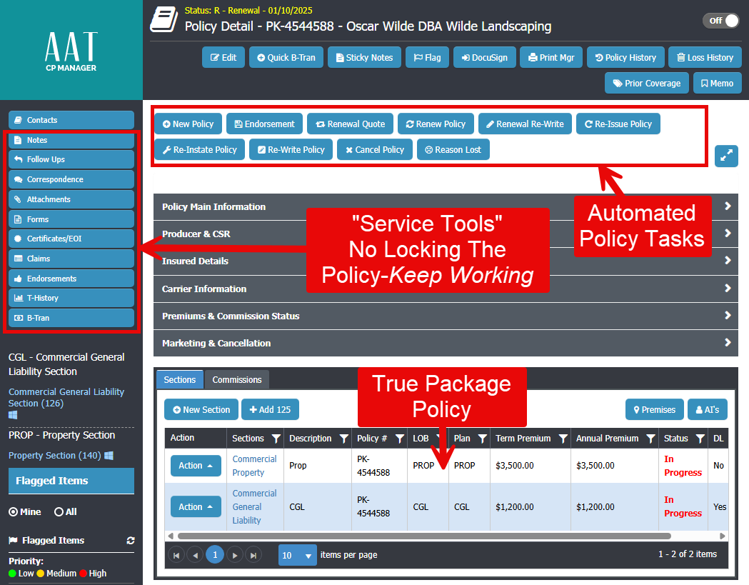 - No Policy Locking: Use service tools like notes and follow ups, and keep working. You retain full access and functionality of the policy window.