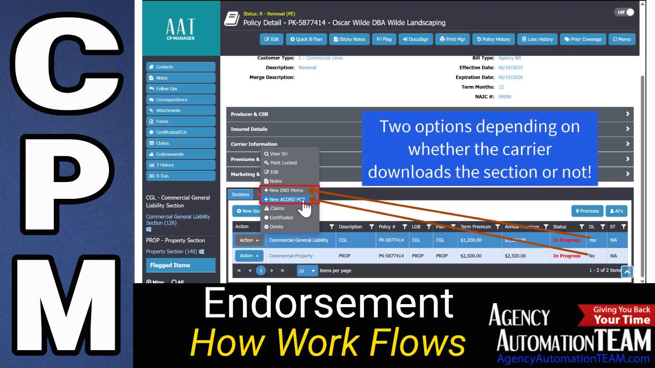 Let’s have your CSR perform a mid-term endorsement or a renewal duplicate in CP Manager. If they don’t move through that workflow faster and more logically than your current system, we aren't the right fit for you.